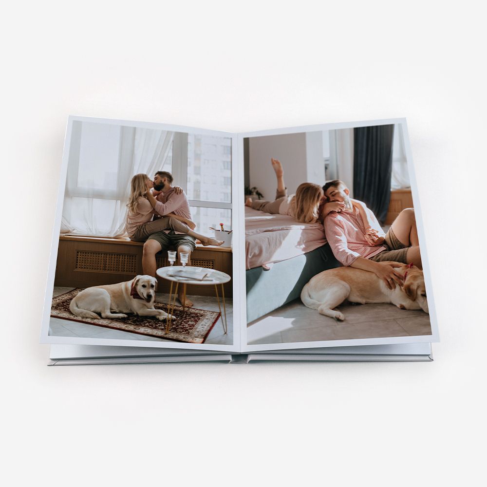 Os Álbuns de Fotos Dreambooks apresentam uma abertura panorâmica, com a possibilidade de colocar uma foto em destaque ocupando duas páginas. Dessa forma, desfrutará de uma visualização perfeita das suas fotos, sem cortes ou partes escondidas.